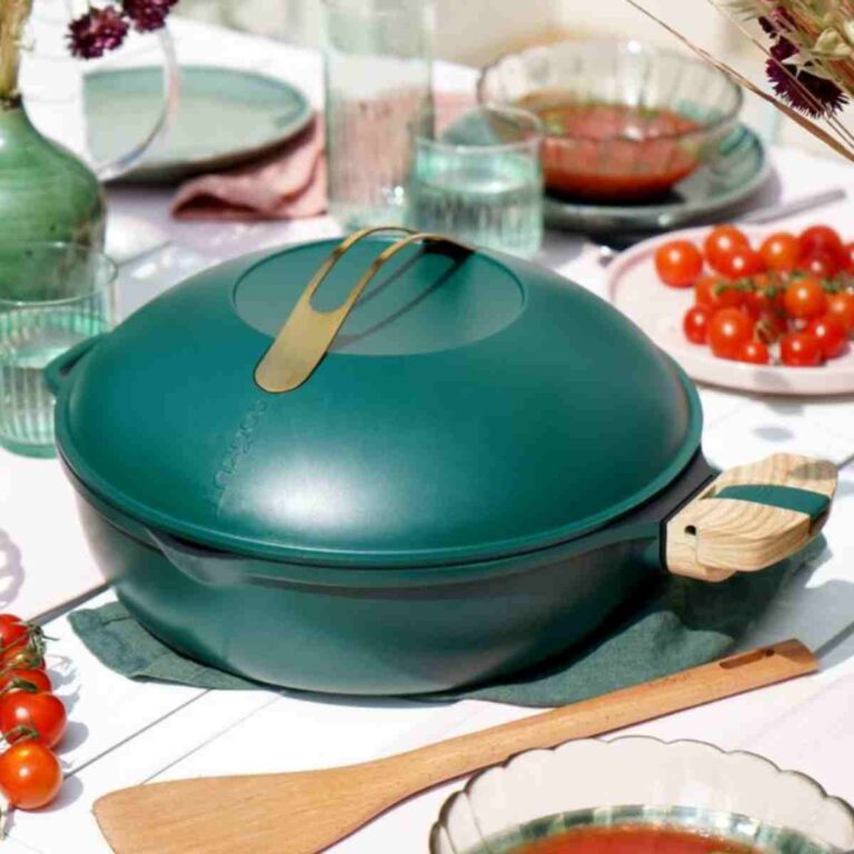 Incluso: 2 manici staccabili (uno lungo e uno corto), un cestello per il vapore e una spatola in legno.