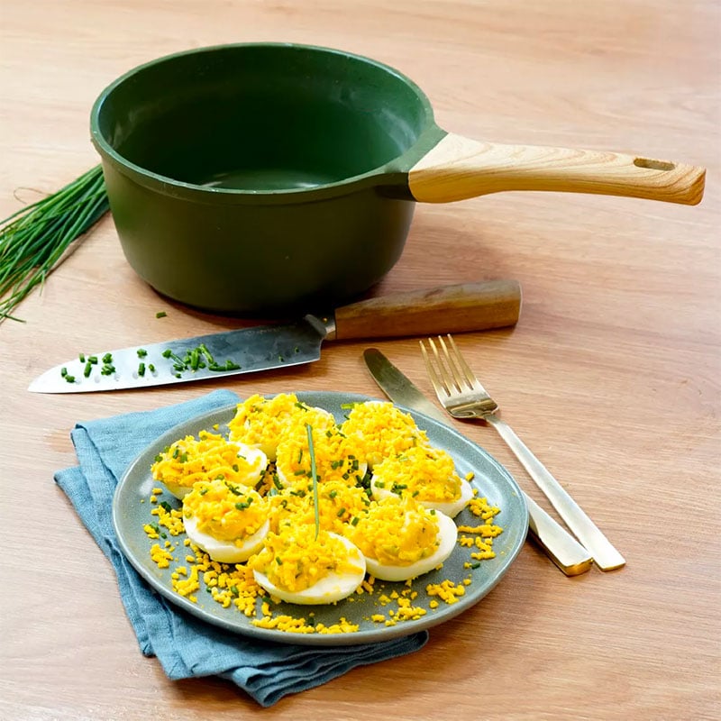La casseruola Cookut, con il suo rivestimento minerale antiaderente privo di PTFE/PFOA, è ideale per cucinare tutti i piatti senza grassi.