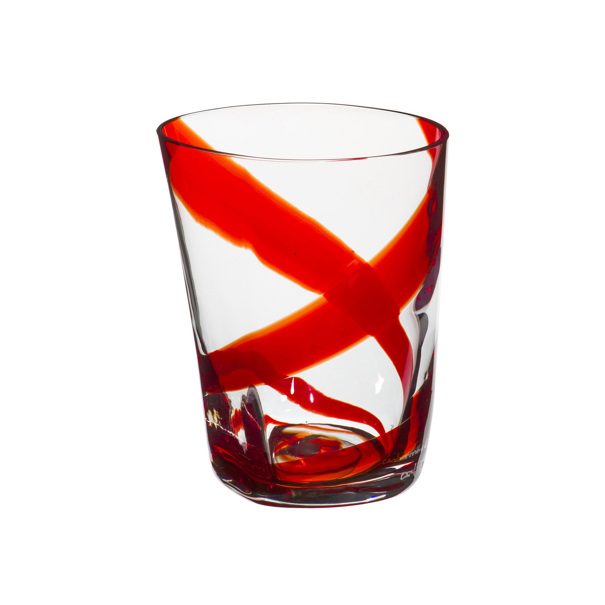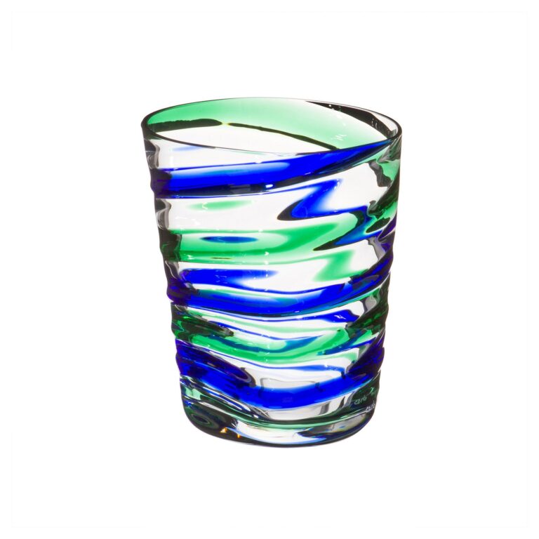 Bicchiere di Murano lavorato e dipinto interamente a mano. Ogni pezzo è quindi unico e inimitabile.