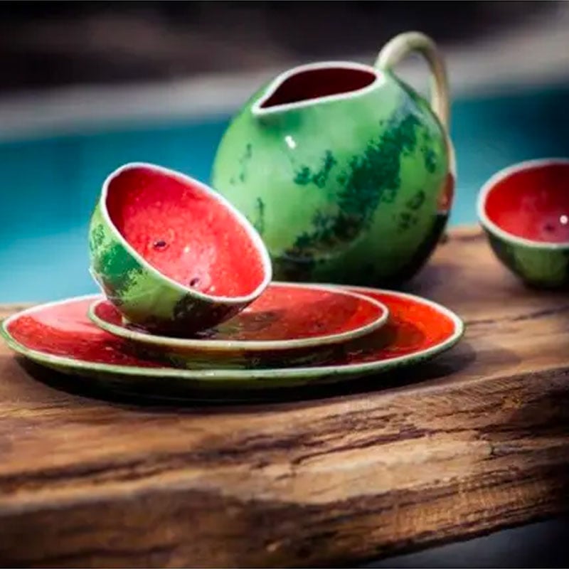 Aggiungi il tocco finale alla tua tavola con questa caraffa Anguria di Bordallo Pinheiro. Realizzata in Portogallo in terracotta, è dipinta a mano con un vivace disegno di anguria e aggiunge un tocco di colore a qualsiasi pasto. Divertiti ad abbinarla con altri pezzi complementari della gamma Anguria.