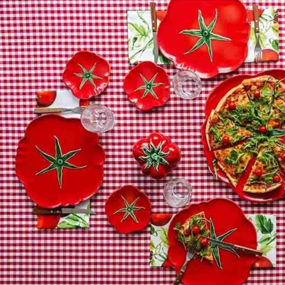 Ricchi di colori, questi piatti in terracotta dipinti a mano portano natura, umorismo e gioia sulla tua tavola. Tomato è un perfetto esempio di come l’anticonformismo creativo e la funzionalità non si escludono.
