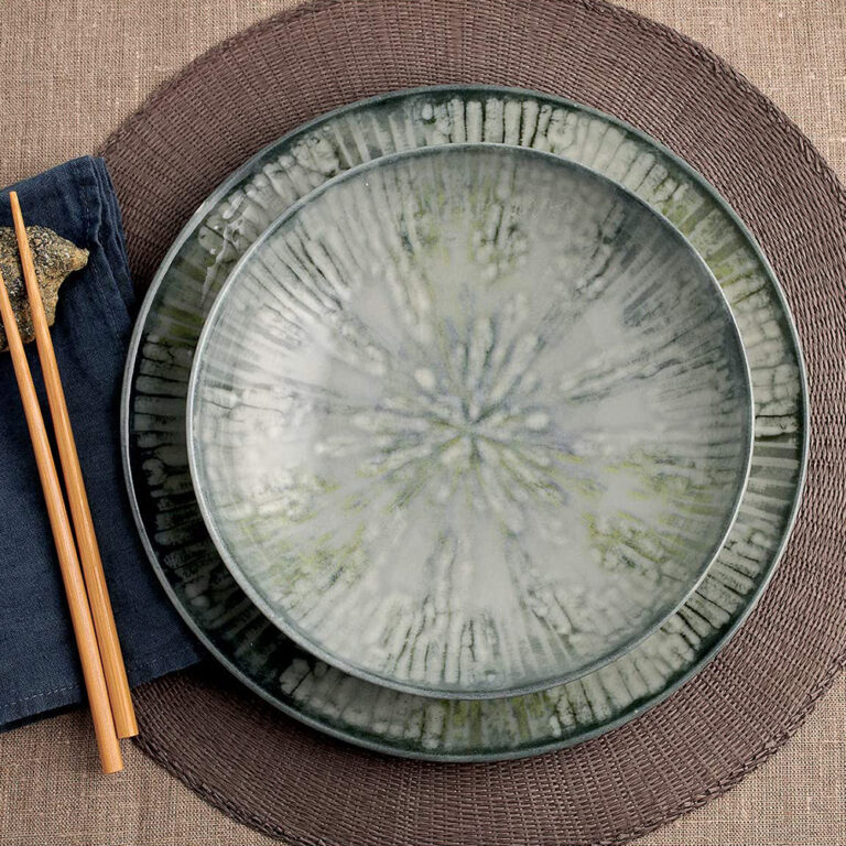 - Set 4 persone (12 pz) include piatto piano diametro cm 28, piatto fondo diametro cm 22, piatto frutta diametro cm 20; tribal mood include 4 decori differenti tra loro, per il piatto piano e frutta