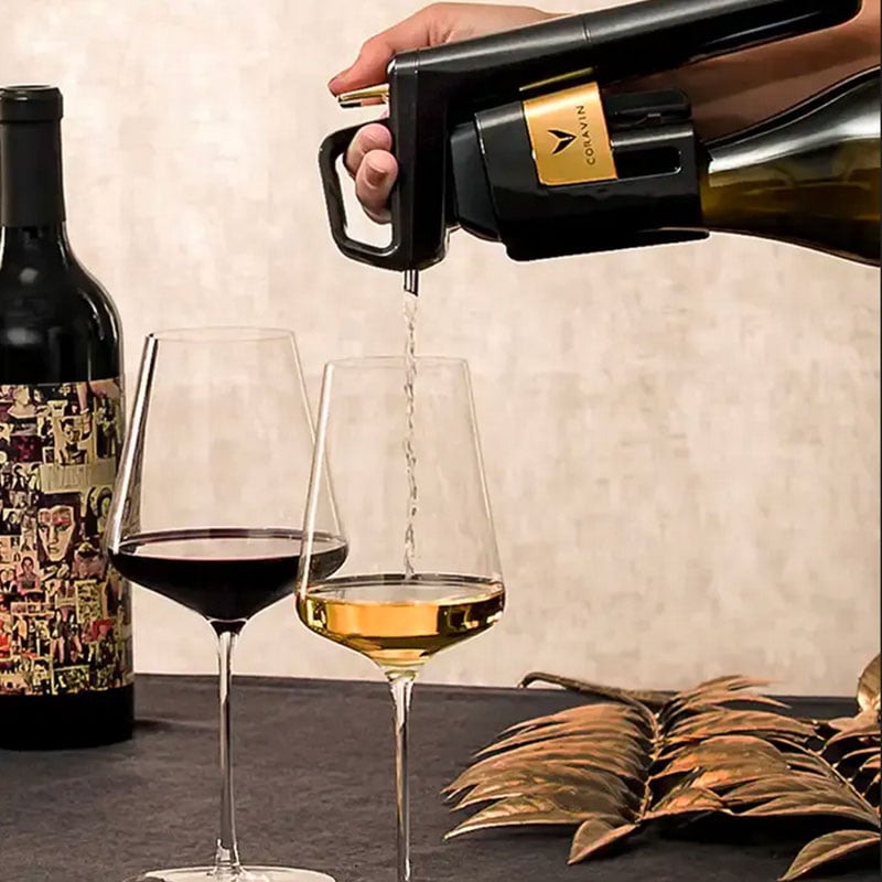 Caratterizzato da colori e finiture eleganti e lucide, questo lussuoso sistema permette di versare il vino senza mai rimuovere il tappo e di conservare il resto della bottiglia per mesi o addirittura anni. - Aeratore Timeless